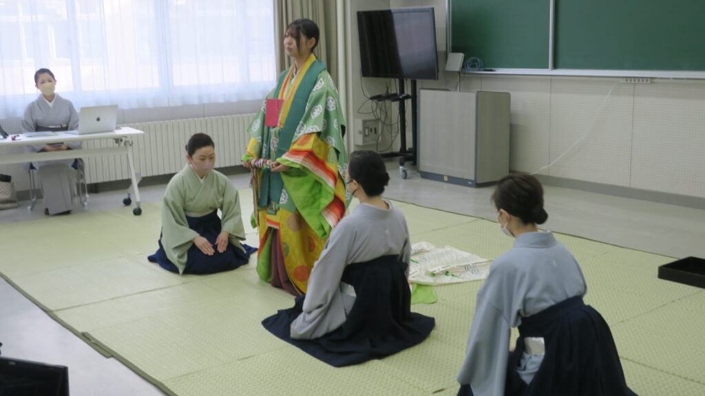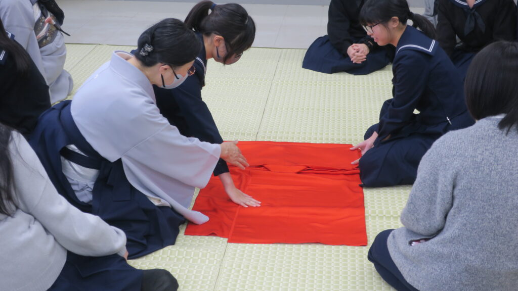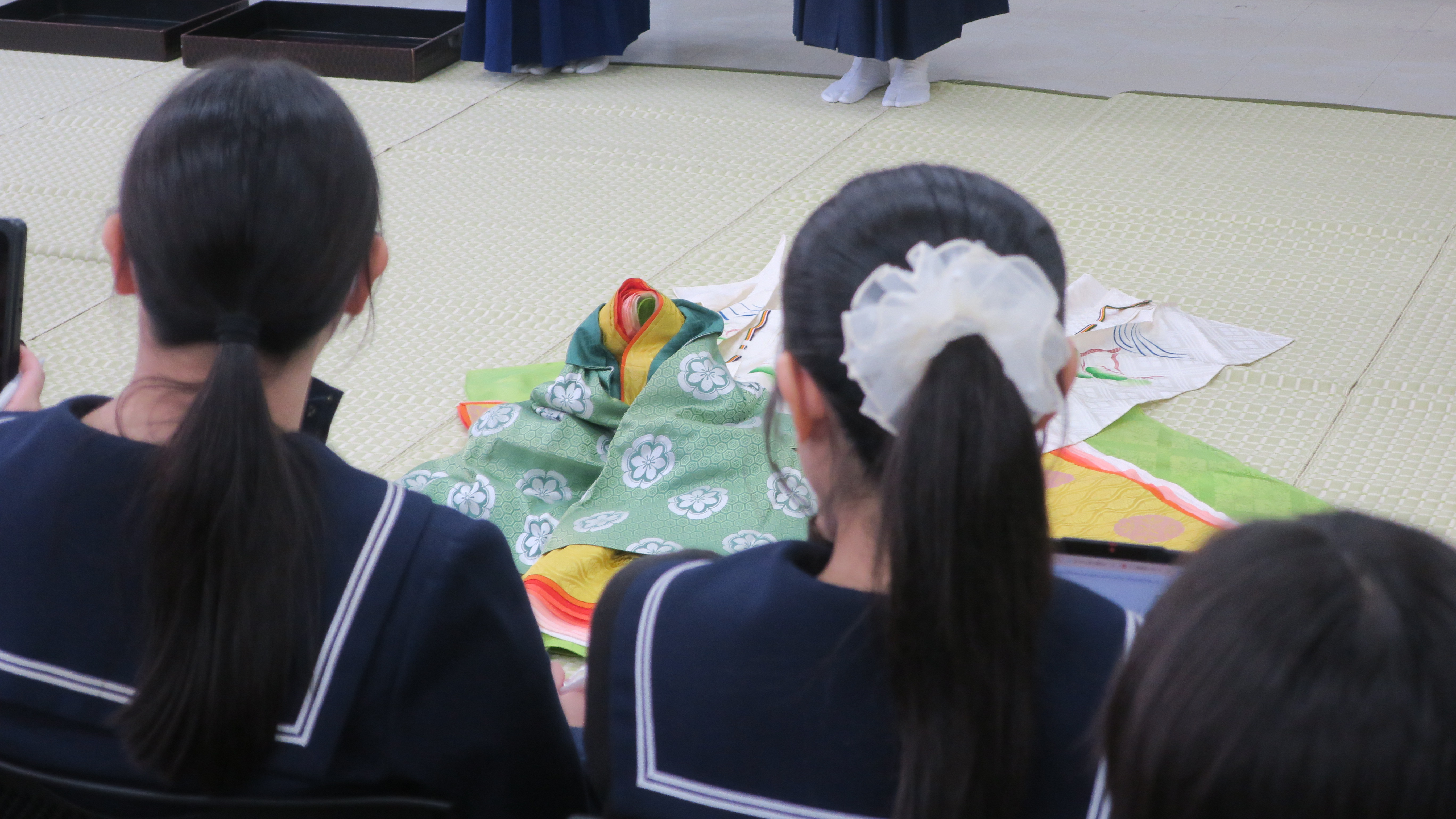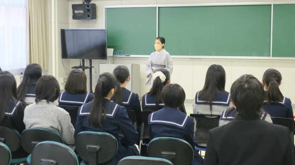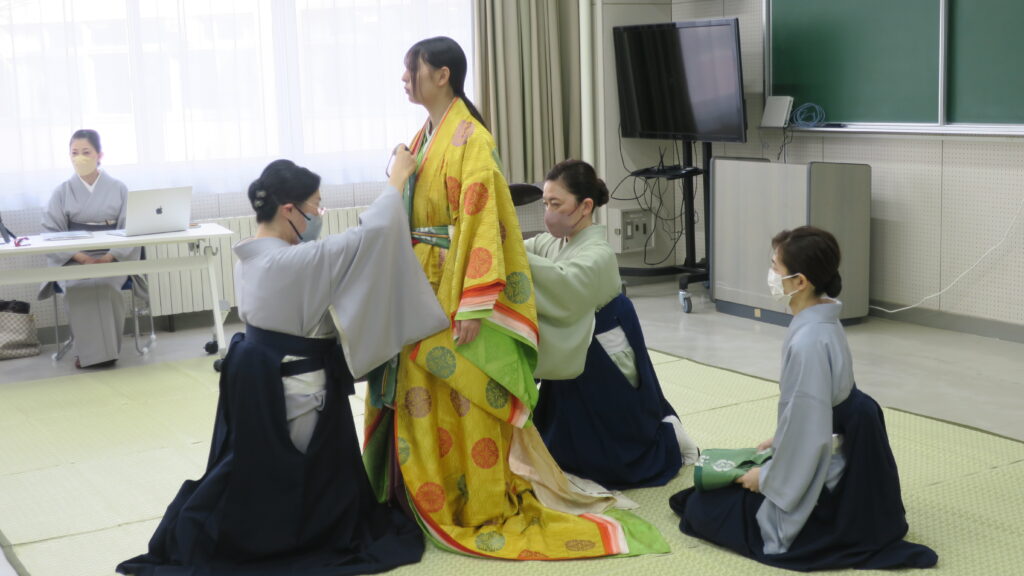 北海道江別高等学校にて「十二単着装体験授業」を実施しました。