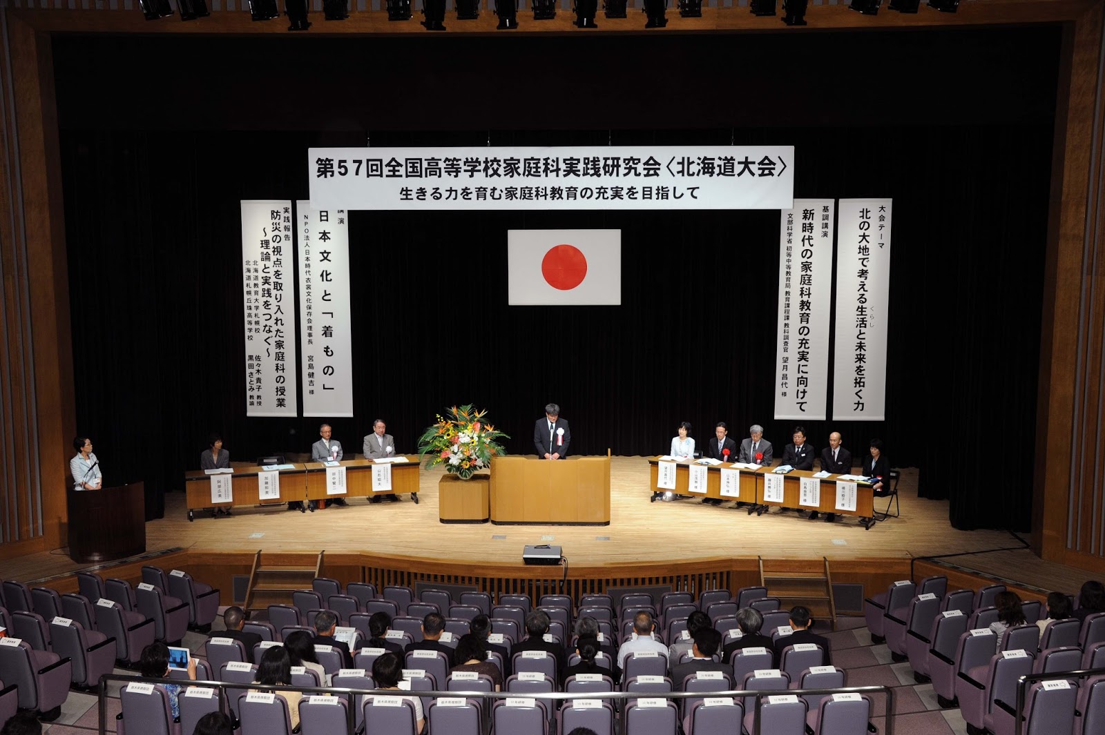 7月30日 北海道立道民活動センターかでる2.7大ホールにて、全国高等学校長協会家庭部会他主催・文部科学省他後援により「第57回全国高等学校家庭科実践研究会」が開催され、全国から200名余りの公私立高等学校家庭科教員が参集されました。