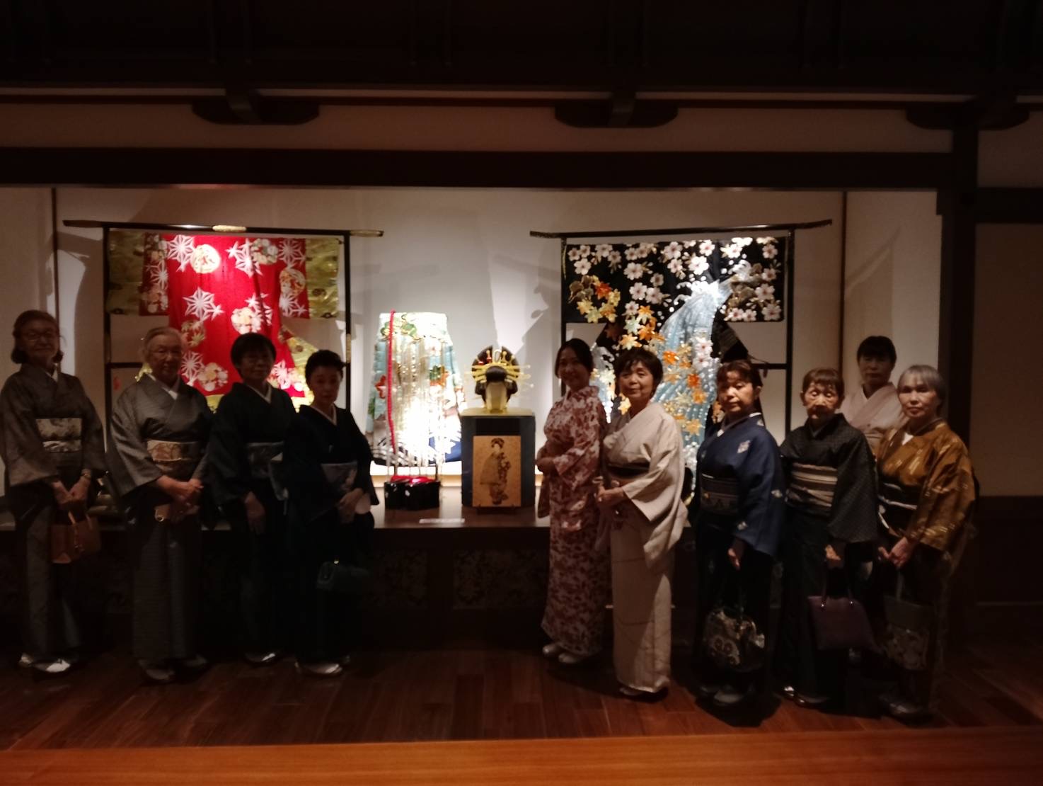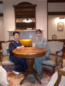 着つけを学ぶ皆さんはこの日もきものに身を包み、ラグジュアリーなホテルのサロンに展示された衣裳を観覧