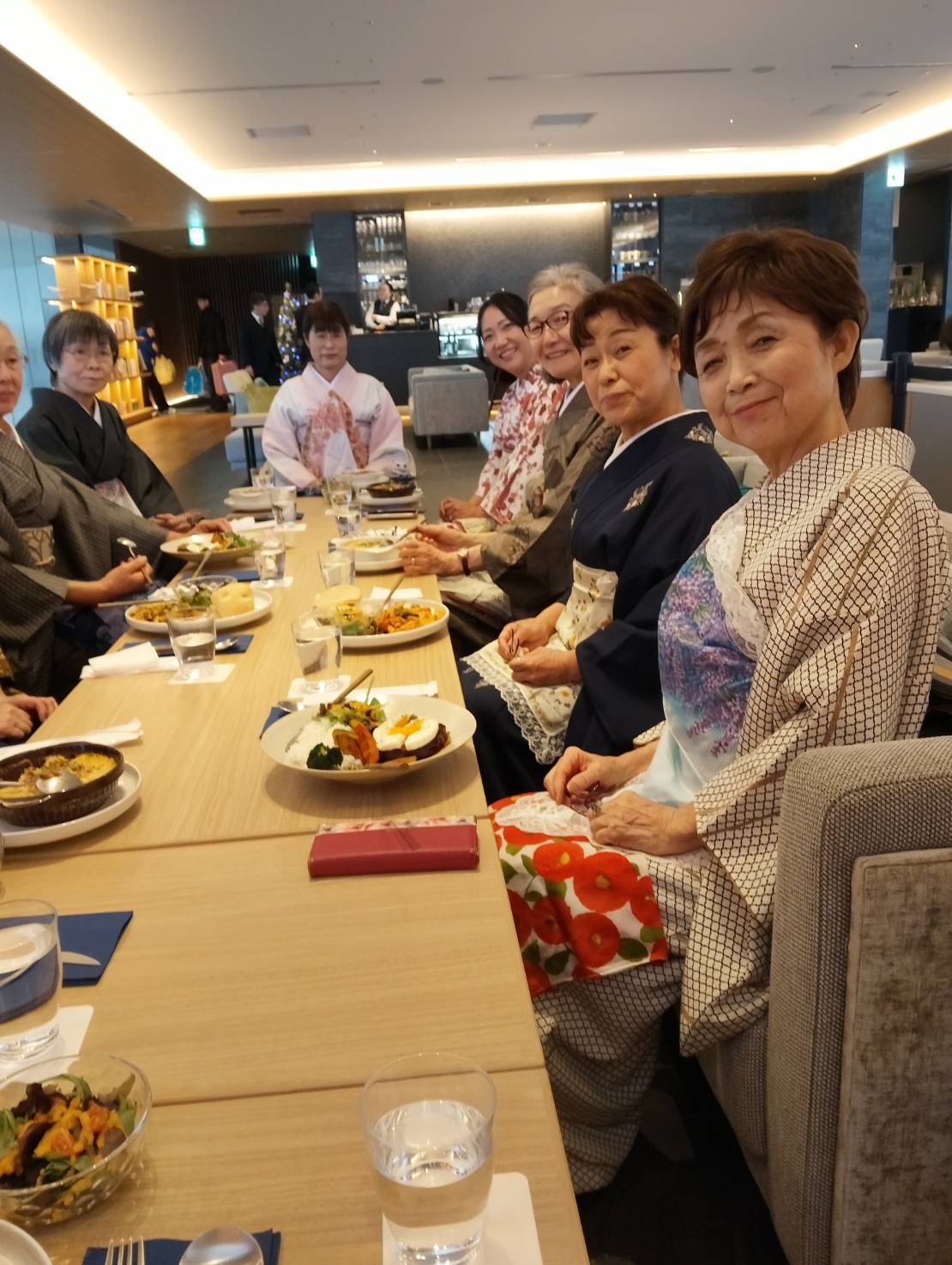 千歳市で教室を開く神田先生・神原先生が、生徒の皆さんと新千歳空港のホテル「ポルトムインターナショナル」を訪れ、ゲストサロンに展示された「花魁」衣裳の観覧とカフェでのランチを楽しみました